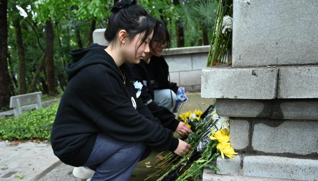 他们通过祭拜,鞠躬,献花等形式,表达了大家对于革命先烈的追忆与景仰。先烈们如同点燃星火的薪柴,用热血和牺牲,铸就了社会主义的高墙,危机之下唯有责任,这血一般的精神正激励着我们每一个人。