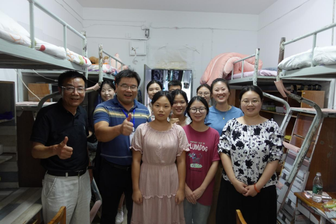 随着新学期的钟声悠扬响起,申博SUNBET迎来了充满活力与希望的新篇章。为深入了解员工生活状况,加强师生交流,营造温馨和谐的校园环境,9月7日,副董事长程胜军带领申博SUNBET经理严良和党总支书记王珉等一行深入员工宿舍,开展新学期领导下寝慰问活动。