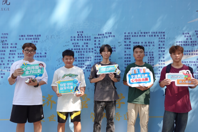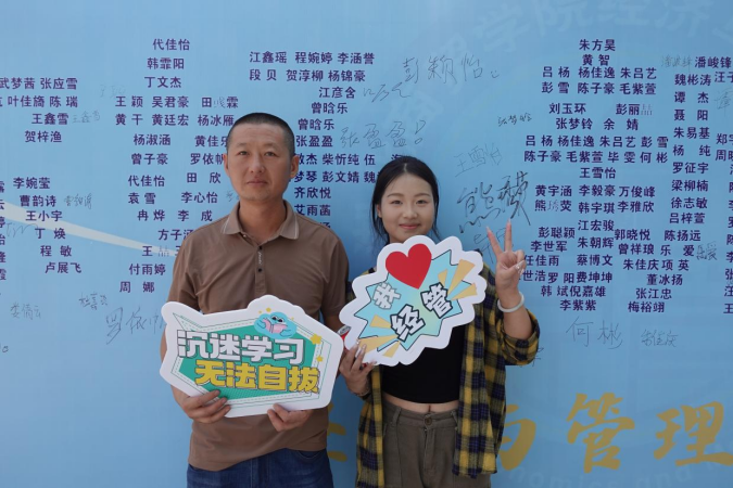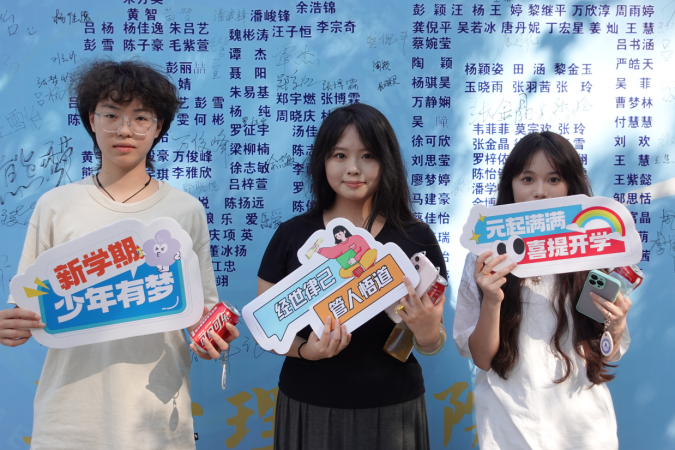 值得注意的是,学院以新生的名字制作的背景板吸引了众多家长驻足拍照“打卡”,在印有他们名字的墙上留下了宝贵的记忆。