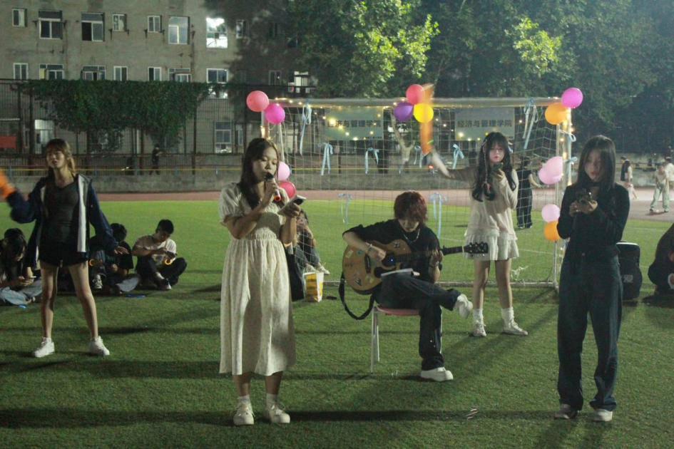 值得一提的是,学院的员工干部为新生举办了一场别开生面的草坪迎新晚会。晚会节目精彩纷呈,既有激昂高亢的歌曲串烧,展现了新时代青年的蓬勃朝气;又有曼妙多姿的舞蹈表演,轻盈的步伐在夜色中勾勒出青春最美的轮廓;晚会期间,还穿插了互动游戏环节,让新同学们在轻松愉快的氛围中迅速拉近了彼此的距离,增进了友谊。现场笑声与掌声不断,气氛热烈而温馨。迎新晚会为新同学们提供了一个展示自我、放飞梦想的舞台,也成为了他们老员工涯中一段难忘的开端。