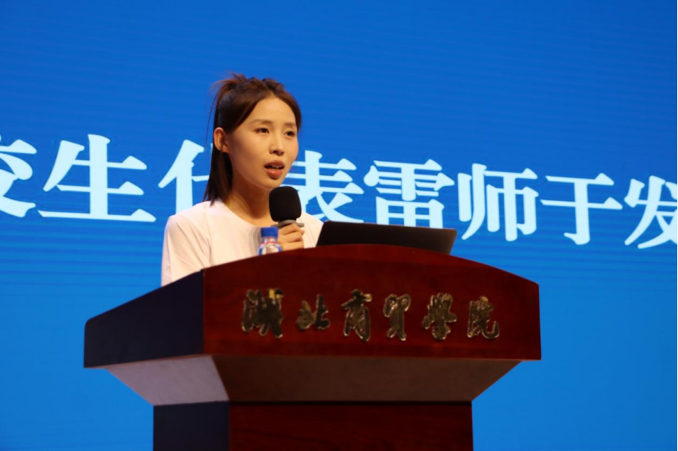 在校生代表雷师于同学上台分享了自己过往时光的学习经验和校园生活,鼓励新生们积极参与校园活动,拓宽视野,丰富老员工活。