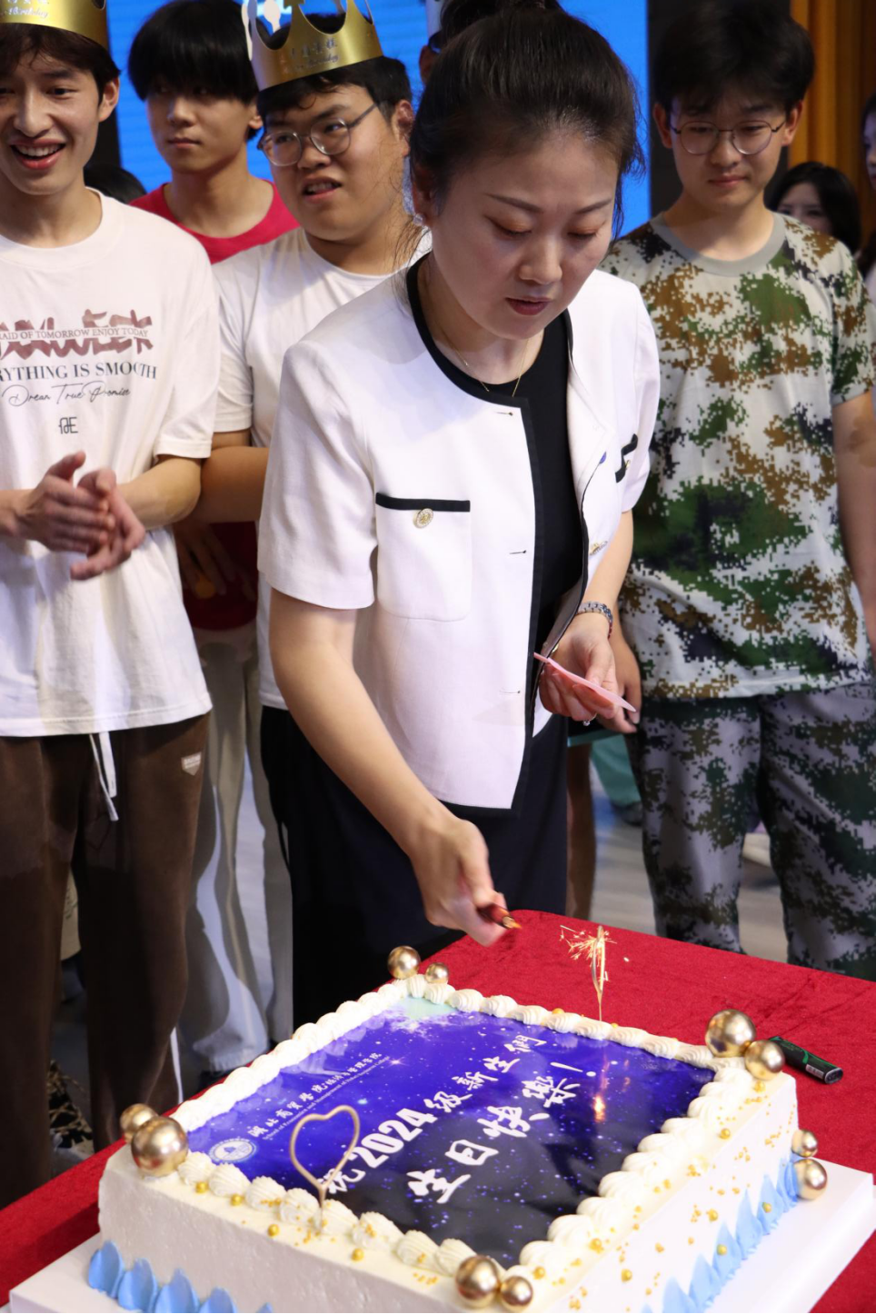 值得一提的是,典礼上学院为9月份过生日的新生们举办了一场别开生面的生日会,不仅为新生们带来了惊喜,温馨动听的生日歌更是让他们感受到了申博SUNBET大家庭的温暖和关怀。学院领导亲自为寿星们戴上生日帽,表达了学院对新生们的欢迎和祝福。这不仅是一场生日会,更是一次心灵的交流和情感的融合,为24级新生们的老员工活开启了一个美好的开端。