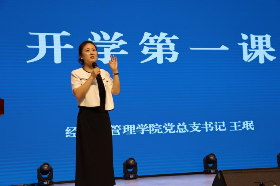 典礼伊始,王珉为新生们带来了开学第一课,以“内驱力、外驱力的相互作用”为主题,鼓励新生们树立远大理想,勇于担当时代责任,以实际行动书写青春华章。