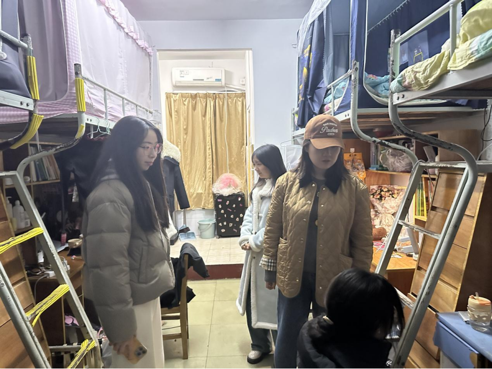 班会结束后,王珉带领辅导员深入员工宿舍,与同学们进行面对面交流,详细了解同学们的学习、生活、心理等方面的情况,耐心解答同学们提出的问题和困惑。辅导员们还仔细检查了宿舍卫生、安全用电、宿舍设备等情况,叮嘱同学们要保持良好的生活习惯,注意个人卫生和宿舍环境卫生,共同营造温馨和谐的宿舍氛围。