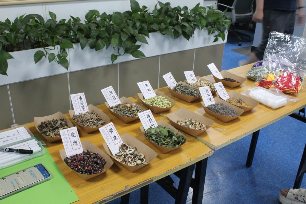 活动现场精心布置,洋溢着浓厚的节日氛围。桌上整齐摆放着色彩缤纷的布料、填充用的艾草、薰衣草等天然香料,将端午民俗与现代创意完美融合。学院团委员工会为参与者们简要介绍了端午节的起源、习俗以及香囊的文化内涵与象征意义——祈福安康、驱蚊防疫,让师生们对这项传统手工艺有了更深的认识。