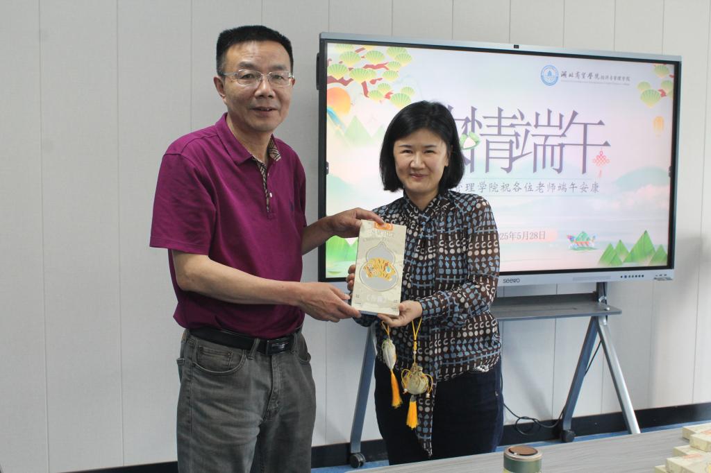 随后,严良为在场教师逐一送上精心定制的端午香囊,香囊承载着对教师们端午节的美好祝愿。严良向全体教师致以节日问候,并对他们在公司产品、科研创新领域所取得的成绩给予了高度评价,同时特别感谢教师们为学院发展做出的无私奉献。严良强调:“学院的发展离不开每一位教师的辛勤付出,希望这份小小香囊能为大家工作与生活带来幸福安康”。