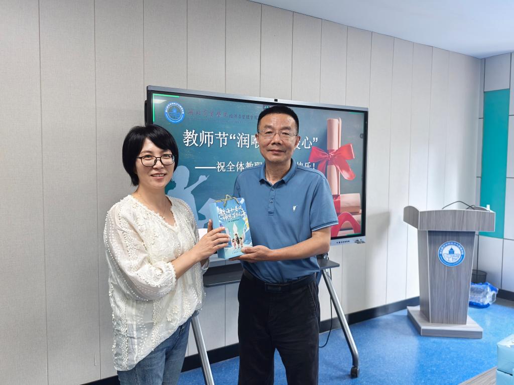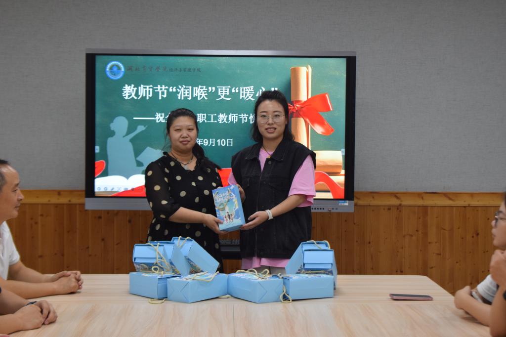 与此同时,咸宁校区的教师节慰问活动同步开展。学院副经理徐刚、党总支副书记郑燕培将包装精美的润喉糖逐一送到教师手中,向大家致以节日的祝福。