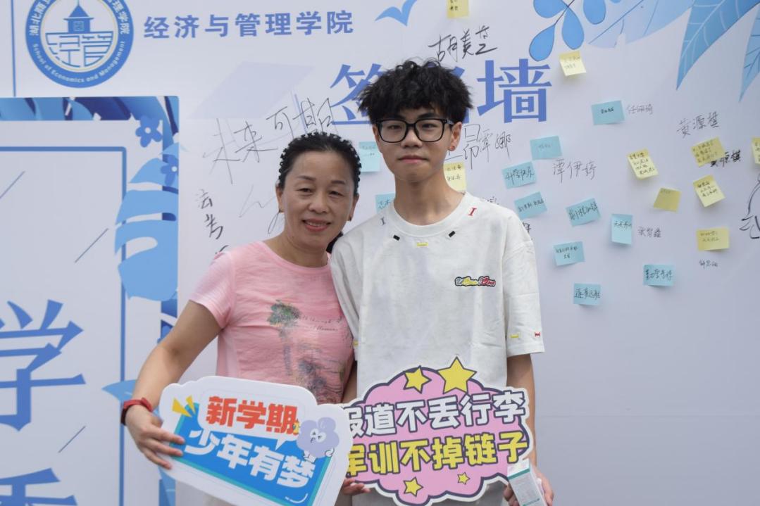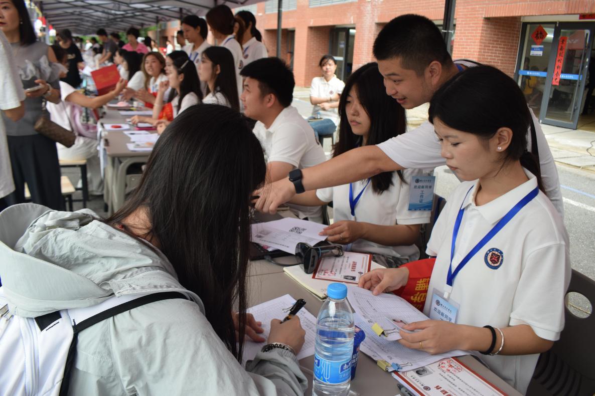 为进一步增强新生的融入感和仪式感,学院特别策划“幸运抽奖”互动环节,奖品涵盖笔记本、台灯等学习用品,雨伞、小风扇等生活物资,以及羽毛球拍、跳绳等体育器材,贴近员工实际需求,广受欢迎。现场还设置了大型签名墙和心愿背景板,新生纷纷签名并写下“大学,我来了!”“努力成为更好的自己”等青春寄语,不少员工与家长合影留念,记录大学启程的美好瞬间。